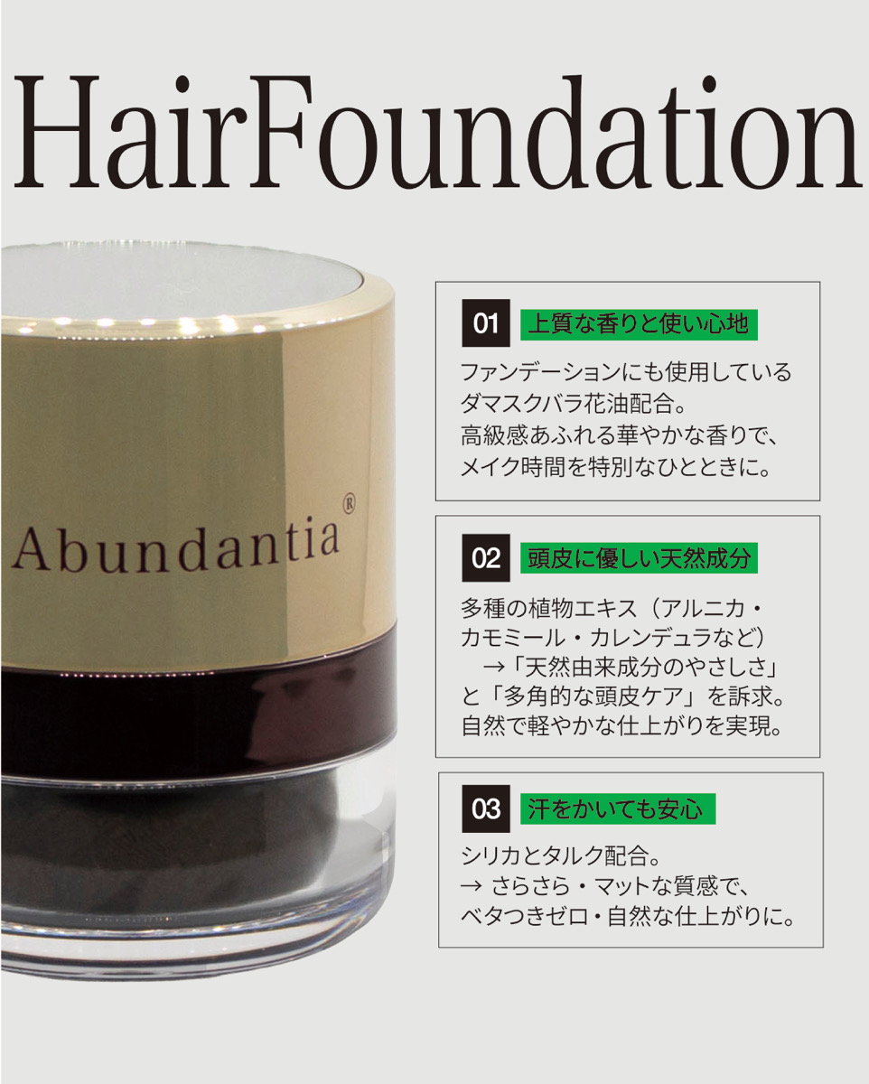 頭皮用ヘアファンデーションは、気になる部分にポンポンとのせるだけで、透けて見える地肌を自然にカバー。